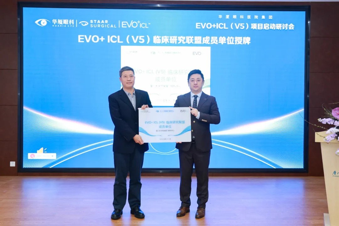 作為本次盛會(huì)的東道主,廈門眼科中心不僅以核心承辦方身份彰顯區(qū)域眼科標(biāo)桿實(shí)力,更憑借深厚的技術(shù)積淀,在現(xiàn)場獲頒“EVO+ ICL(V5)首批臨床應(yīng)用合作中心”與“EVO+ ICL(V5)臨床研究聯(lián)盟”兩項(xiàng)授牌,成為福建省唯一入選該臨床研究聯(lián)盟的醫(yī)療機(jī)構(gòu)。這不僅是對其臨床能力的高度認(rèn)可,也進(jìn)一步鞏固了其在區(qū)域內(nèi)在眼內(nèi)屈光技術(shù)發(fā)展與臨床標(biāo)準(zhǔn)制定方面的引領(lǐng)地位。