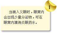 摘除眼球安裝義眼臺后的患者,一般術(shù)后2-3周配戴義眼片。 |